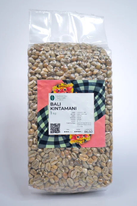 Bali Kintamani Green Beans Coffee is one of Indonesia’s most distinctive Arabica coffees, grown in the highlands of Kintamani, Bali. Cultivated at elevations between 1200 and 1700 meters above sea level, these beans benefit from cool mountain air, fertile volcanic soil, and a balanced tropical climate. The cherries mature slowly over nine months, allowing complex flavours to fully develop inside the bean.